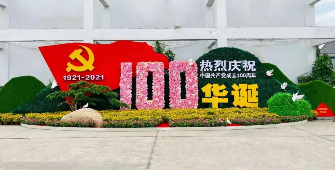 大会结束后,后勤处党支部全体党员至西区田径场西侧外广场,在后勤管理处设计制作的“庆祝中国共产党成立100周年”主题微景观前合影留念。