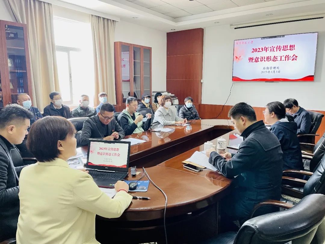 陈素红处长对2022年意识形态工作进行总结,并就2023年重点工作进行安排部署,她强调,一是突出思想引领,提高政治站位。深入学习宣传贯彻党的二十大精神、习近平总书记关于意识形态工作的重要论述,不断深化意识形态工作极端重要性的认识,始终绷紧意识形态工作这根弦。二是夯实主体责任,防范化解风险。要严格落实意识形态工作责任制,压实主体责任,全面履行“一岗双责”职责,将意识形态工作与后勤各项工作紧密结合,一同部署、一同落实。紧盯重要阵地、重要领域,及时发现苗头性倾向性问题,及时进行分析研判,全力防范和化解意识形态风险。三是强化新闻宣传,传播主流思想。不断强化门户网站、微信公众号等意识形态阵地管理,加强宣传思想工作,切实提高新闻的传播力和影响力;严格落实审核发布机制,加强网络意识形态工作队伍建设,提升队伍的政治素养、理论功底和业务能力。