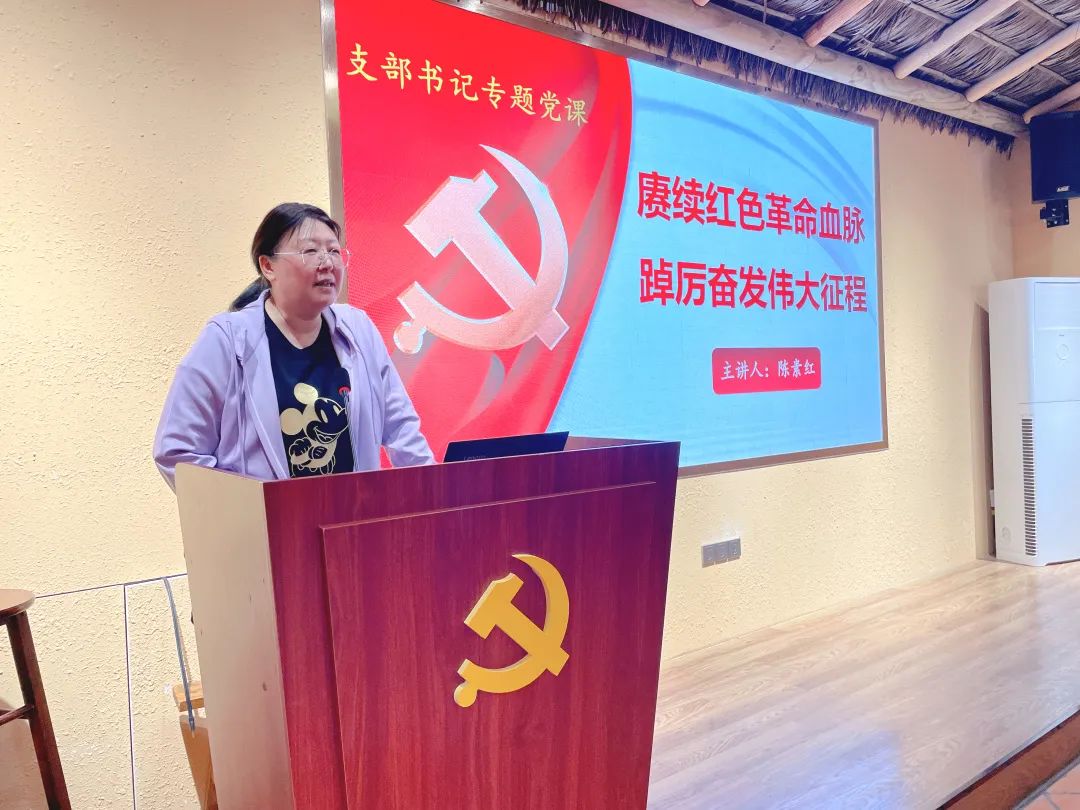 党支部书记上党课:支部书记陈素红为全体党员、入党积极分子上“赓续红色革命血脉,踔厉奋发伟大征程”专题党课,以追溯红色记忆、践行红色精神为主线,教育党员和积极分子们将共产主义信仰融入血脉、根植于心,立足本职岗位,时刻铭记使命、勇毅前行。
