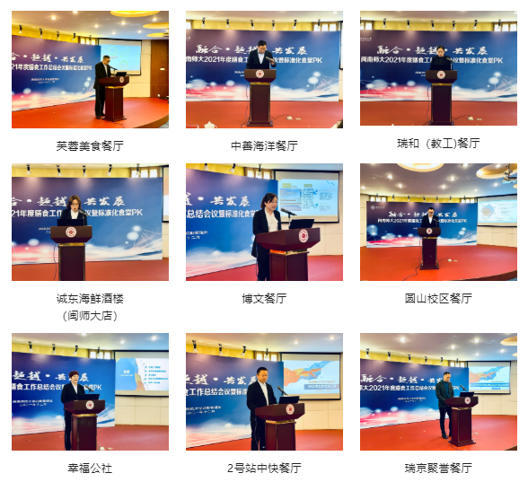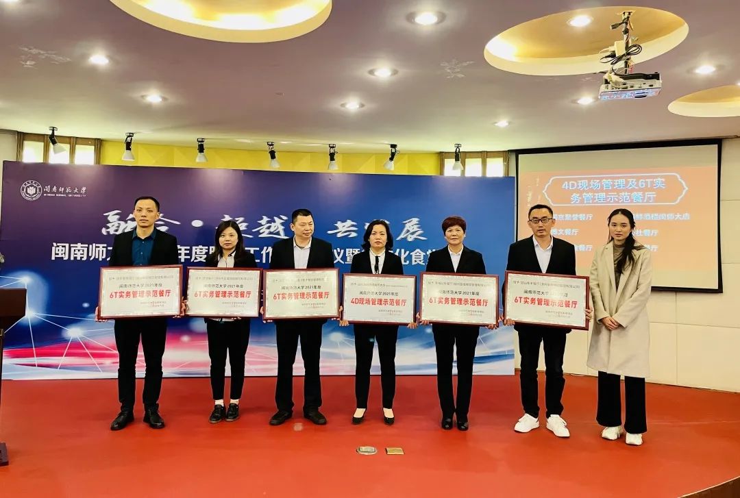 瑞京聚誉餐厅获评6T实务管理示范餐厅、博文餐厅获评6T实务管理示范餐厅、芙蓉美食餐厅获评6T实务管理示范餐厅、诚东海鲜酒楼闽师大店获评4D现场管理示范餐厅、幸福公社餐厅获评6T实务管理示范餐厅、圆山衡丰餐厅获评6T实务管理示范餐厅。