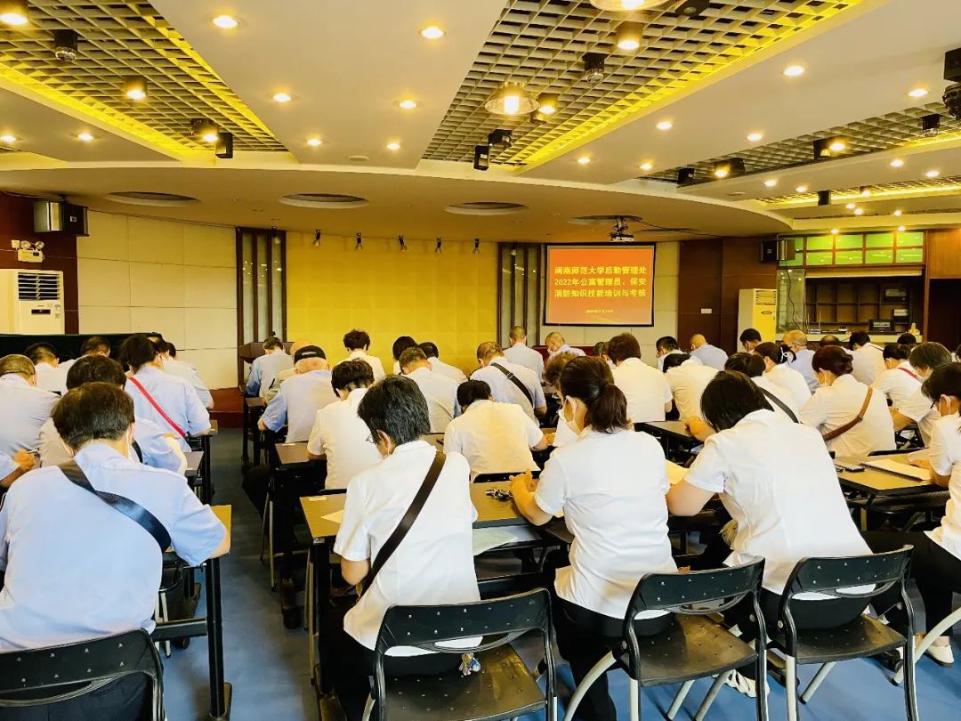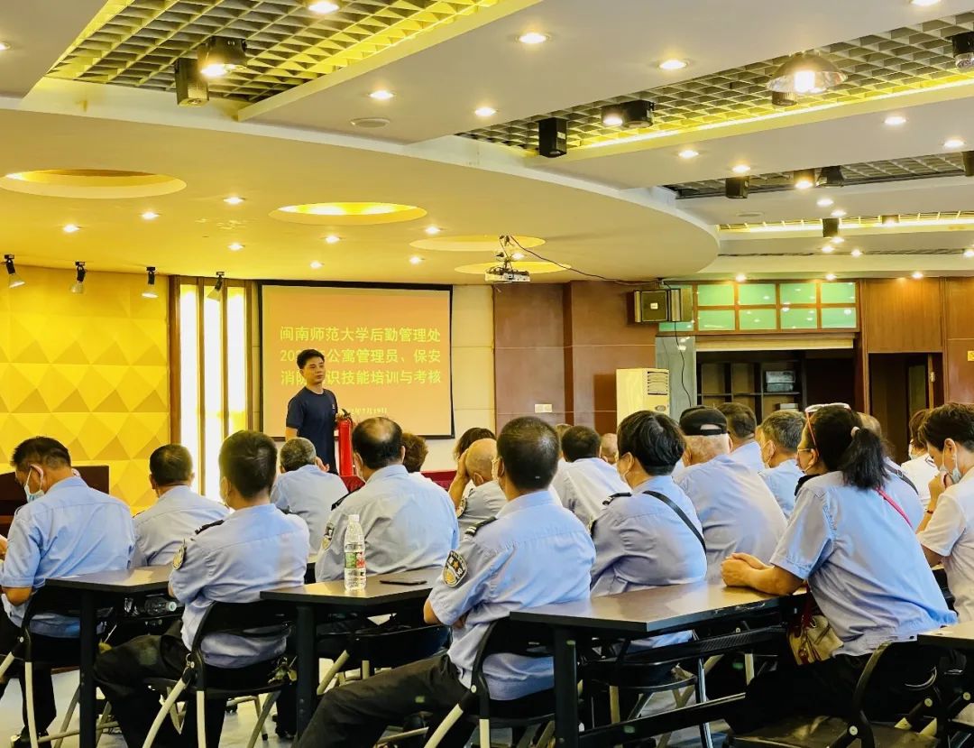 为贯彻落实国务院安全生产会议精神,把握公寓管理重点区域,找准安全防范关键环节,强化重点岗位人员应急处置能力,7月19日,后勤管理处开展公寓管理员、保安消防知识技能培训与考核,北江滨校区及圆山校区公寓管理员、保安共60余人参加了本次培训与考核。