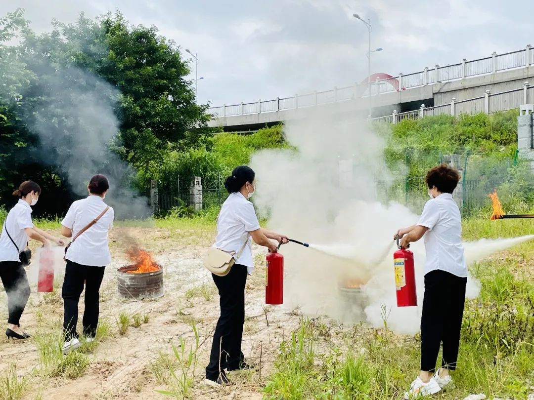 随后,参训人员以“小火会用灭火器、大火会用消火栓”及“见火不慌、抬手就灭”为实训目标,开展户外实操演练和考核,做到逐员培训到位、逐员考核过关。考核内容包括灭火器“灭真火”操作和消火栓“出真水”操作,其中,灭火器按照“一提二拔三压四喷”的动作要求进行操作,消火栓按照“一铺二接三开四射”的动作要求进行操作。