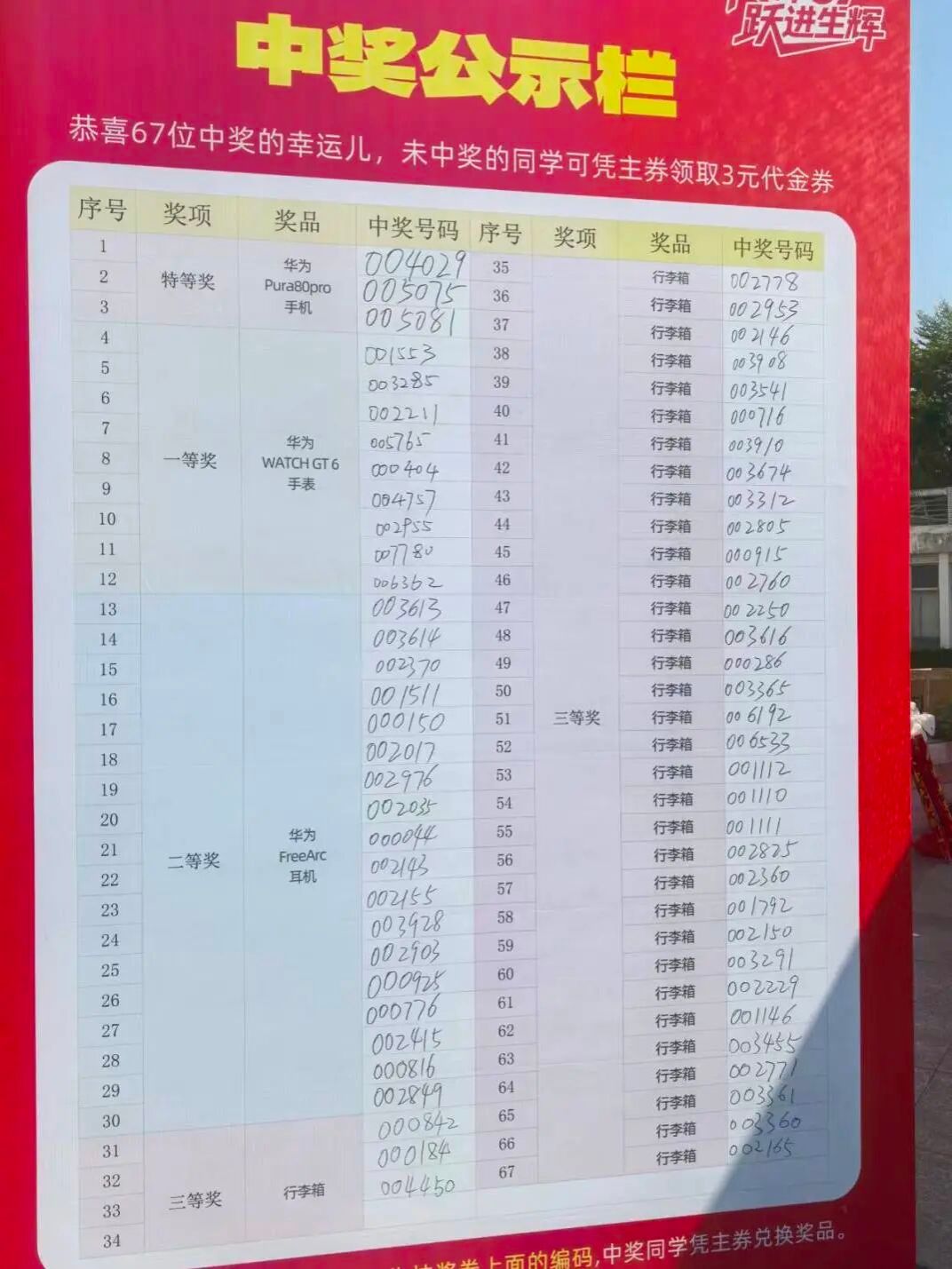 领导嘉宾抽取67名幸运儿