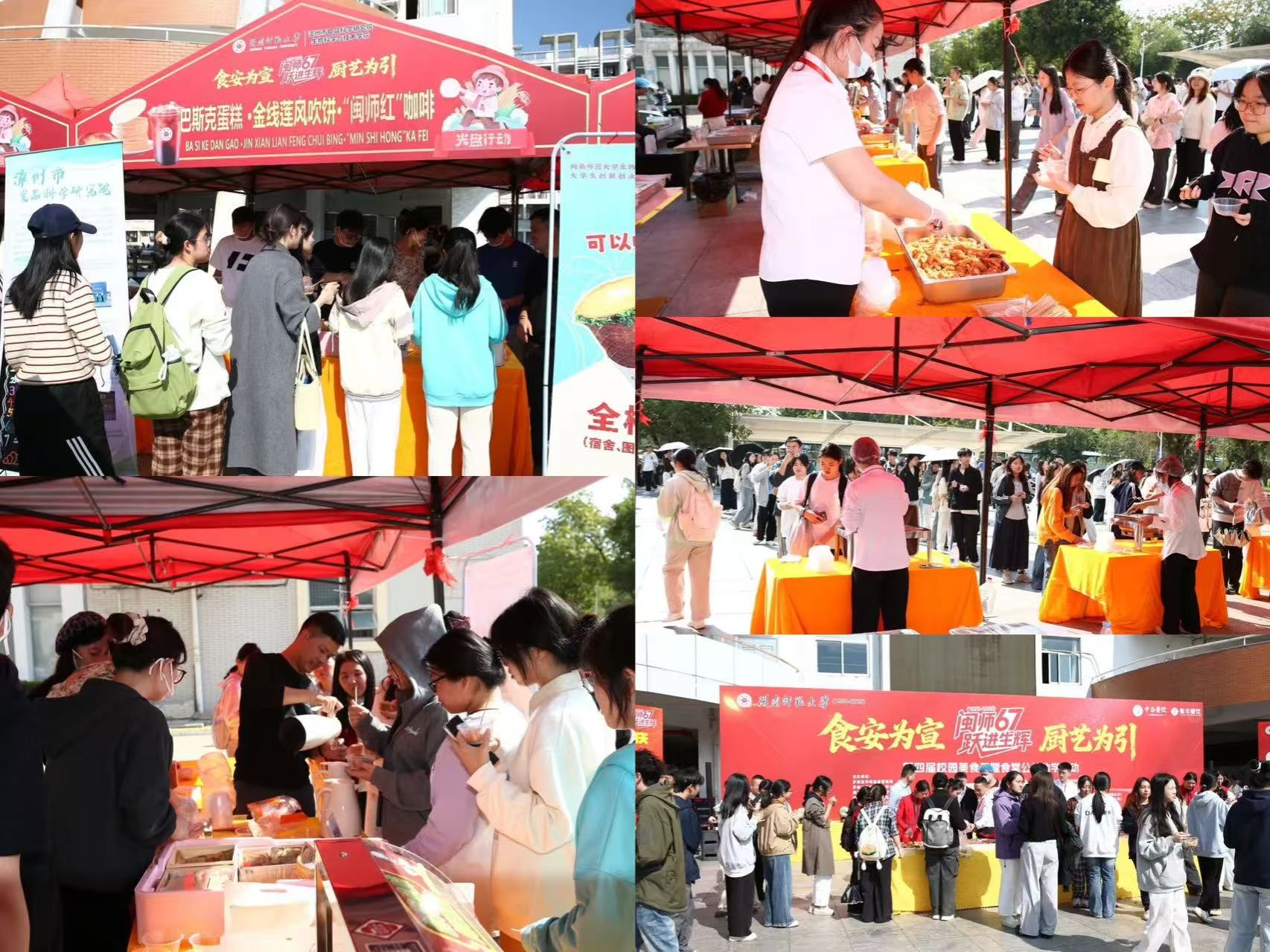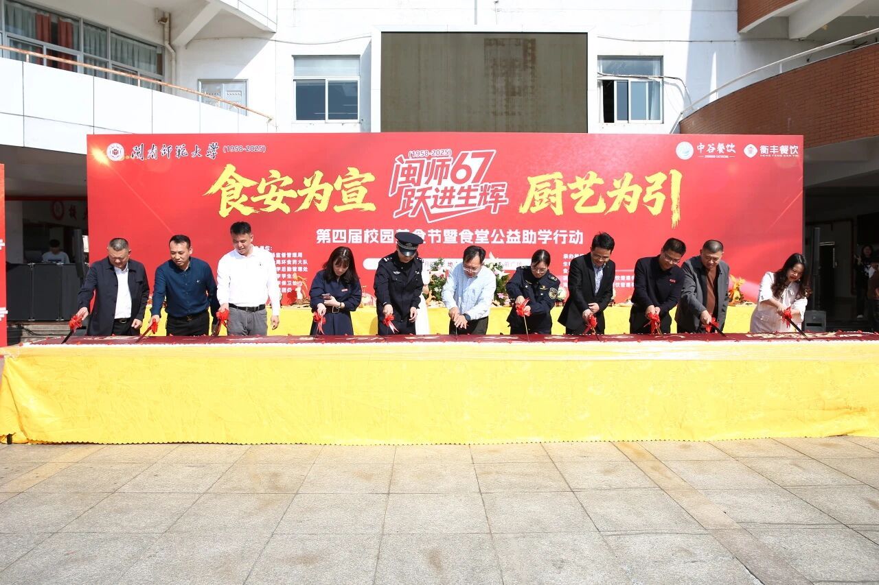我校于2025年12月8日在达理活动中心前广场成功举办以“食安为宣,厨艺为引”为主题的第四届校园美食节。校党委常委、副校长何绍福出席活动,校内有关职能部门负责人、区所市场监督管理局(所)负责人、区公安分局环食药大队负责人,承办单位生物科学与技术学院、食品科学研究院、凌波餐厅(中谷餐饮)、海韵餐厅(衡丰餐饮)相关人员以及学生代表一千余名参与活动。