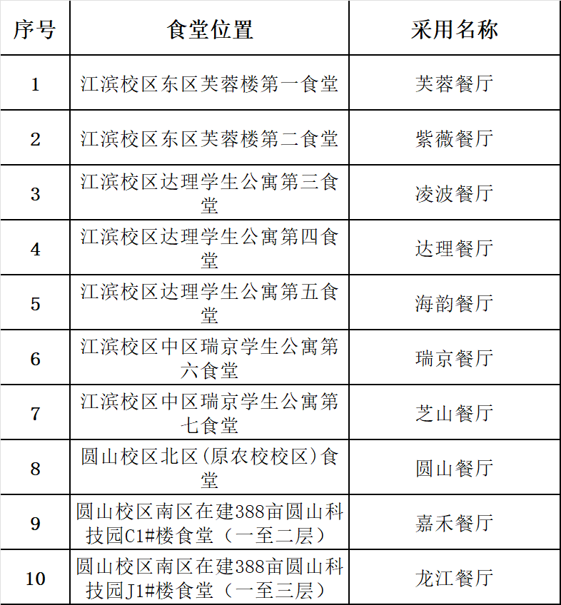 一、食堂已定名称及获奖个人(团队)名单
