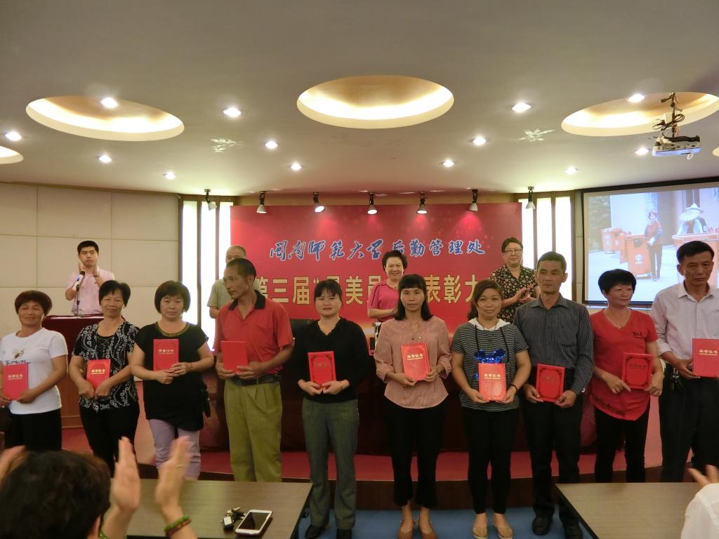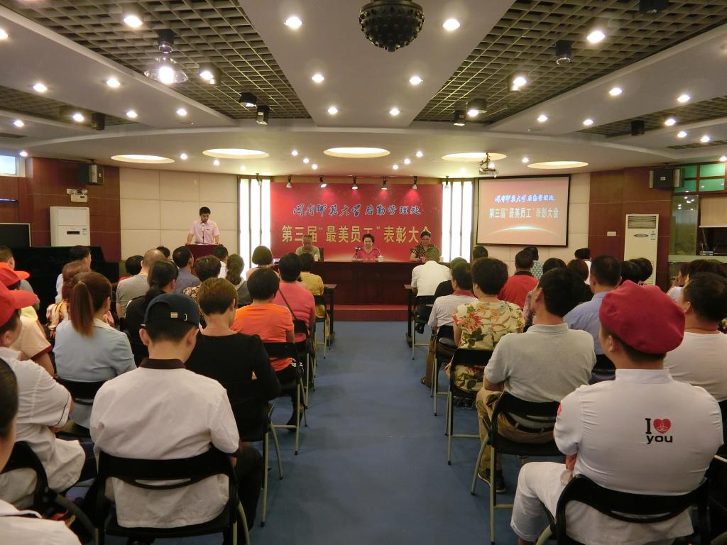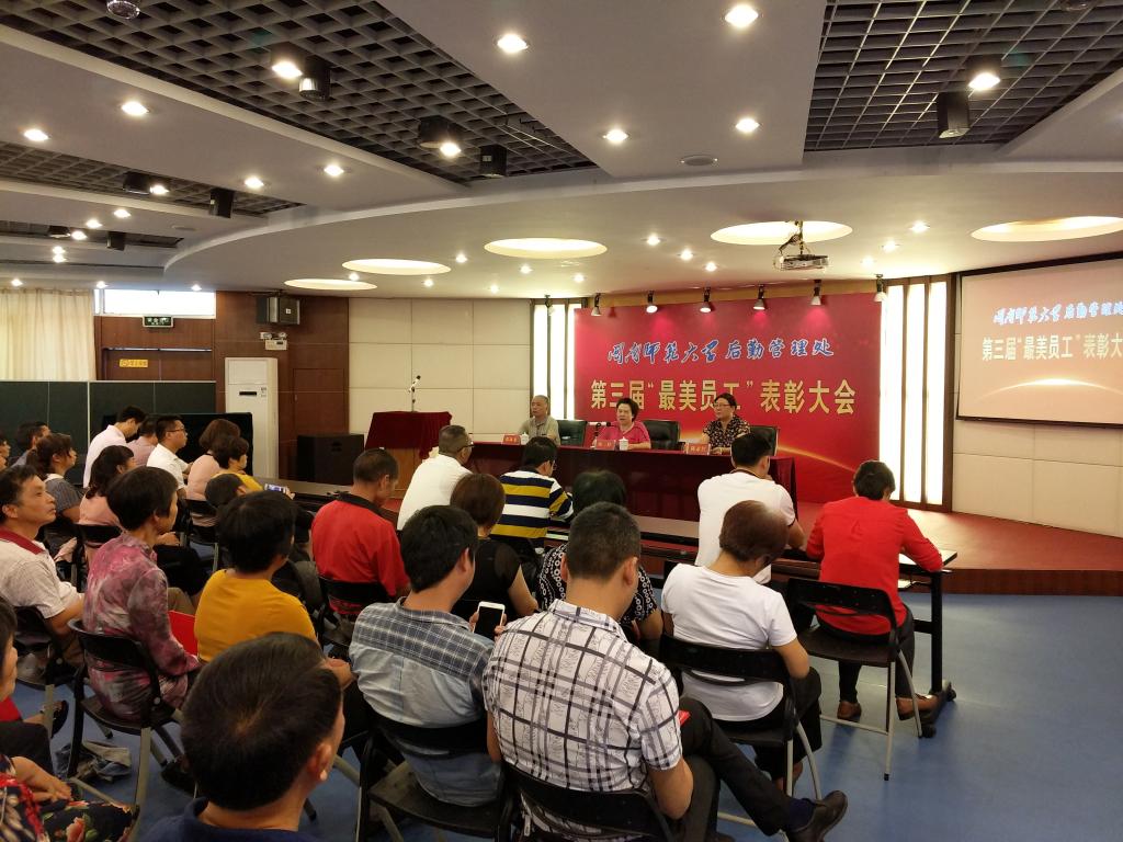 5月10日下午,tyc41183太阳成集团后勤管理处在后勤多功能厅举行第三届后勤“最美员工”表彰大会。校党委委员、副校长蒋一婷同志、后勤管理处处长陈素红同志、副处长郑林龙同志出席了表彰大会,并为获奖的同志颁发荣誉证书。