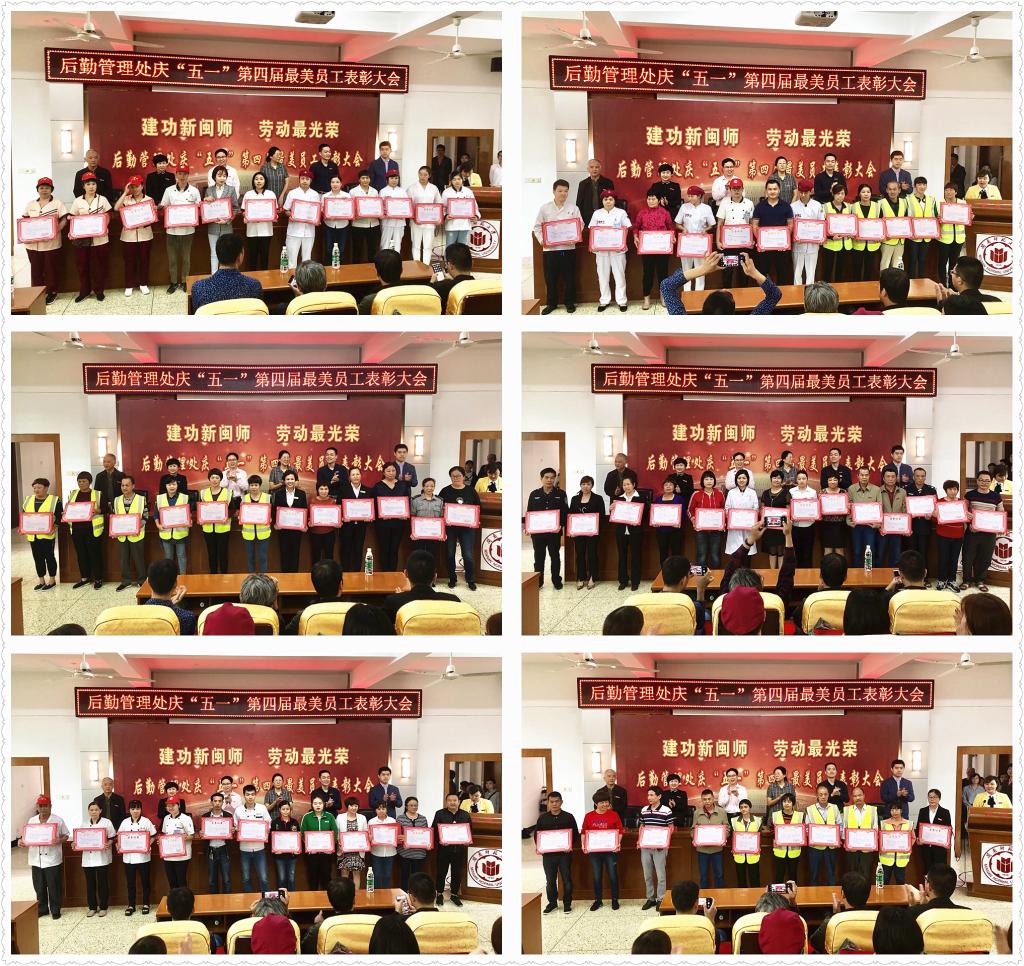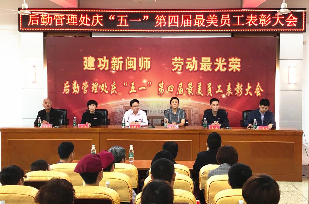 劳动创造幸福,奋斗实现价值。5月6日上午,后勤管理处在逸夫楼会议中心举行庆“五一”第四届最美员工表彰大会,校党委常委、副校长林致远、后勤管理处处长陈素红、宣传部副部长方琼、校团委副书记蔡斌,后勤管理处副处长郑林龙、李志斌出席会议,各科室负责人以及受表彰的“最美员工”、“最美员工提名奖”获得者等近百人参加了会议。