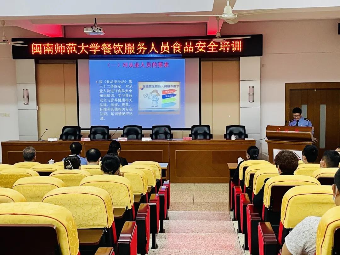 4月15日,漳州市芗城区东铺头市场监管所党员干部来校为后勤管理处膳食科、tyc41183太阳成集团附属实验幼儿园、校内学生食堂、餐厅、酒楼及饮食店面共16个单位近50名管理人员开展食品安全培训。