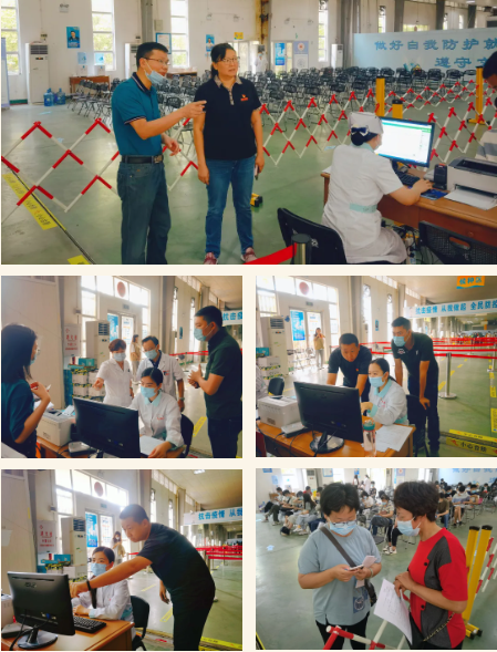 5月8日,相关领导及工作人员一早便到达现场进行接种准备工作。