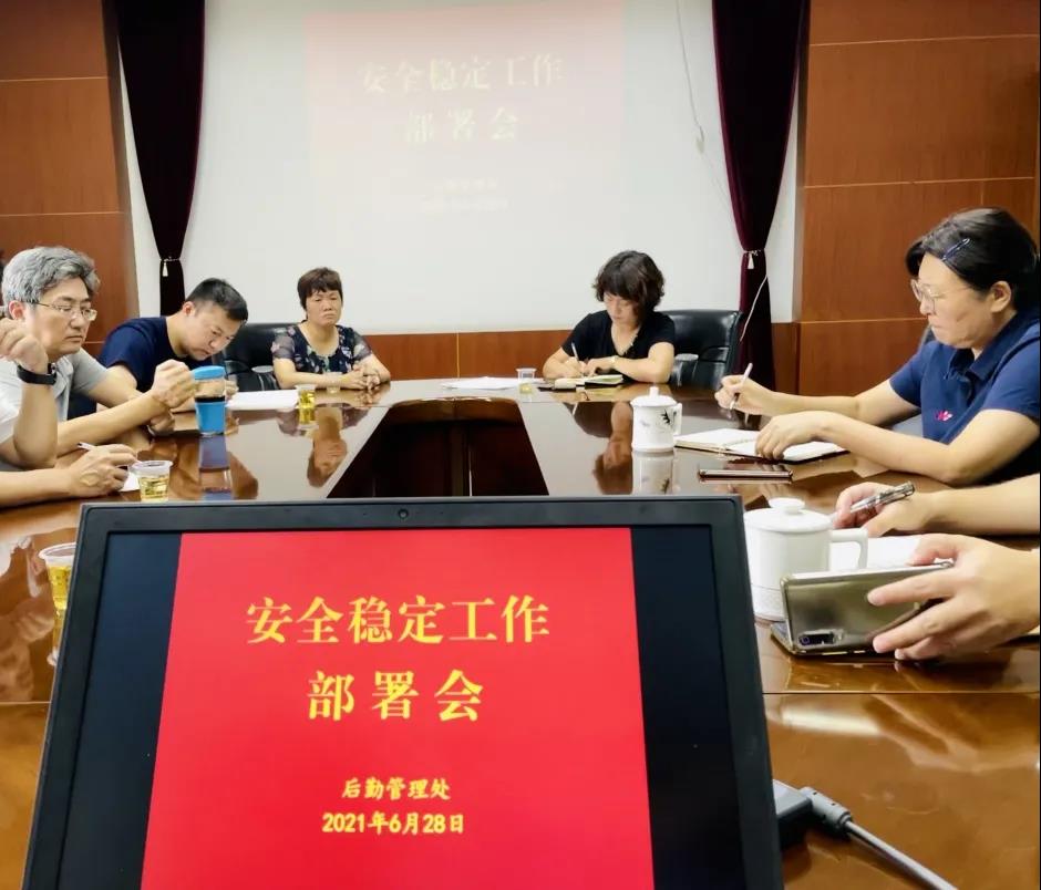 为深入贯彻学校安全稳定工作会议精神,扎实推进校园安全稳定全面排查整治工作,有效防范化解安全稳定风险,努力营造庆祝建党100周年的浓厚氛围和良好政治生态,6月28日至6月30日,后勤管理处对安全稳定工作进行再动员、再部署,把安全责任和各项措施落到实处。