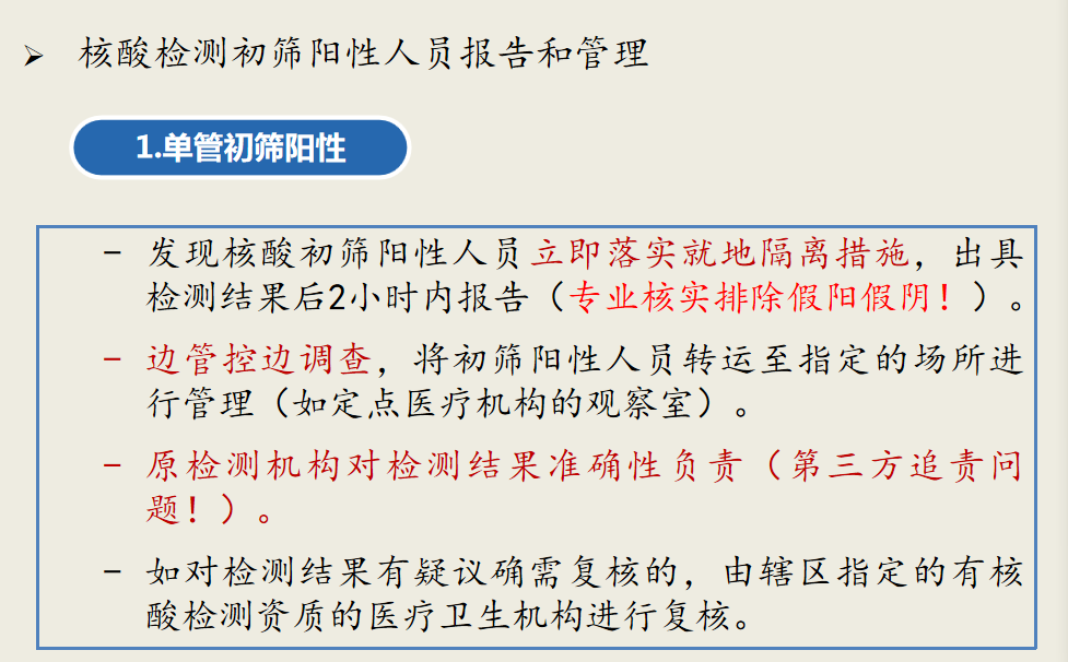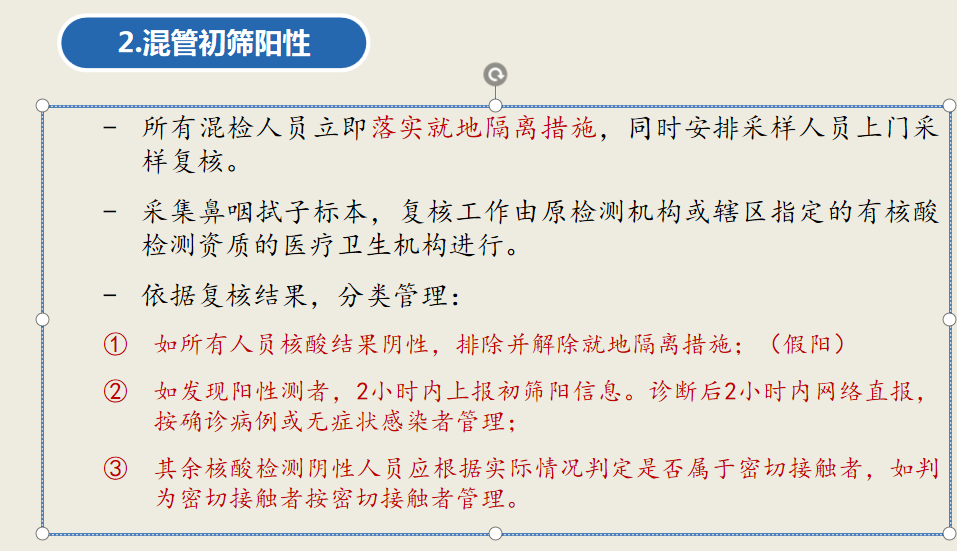 2、比如,密接人员等待转运、混管阳性人员等待复核前的临时就地管控。