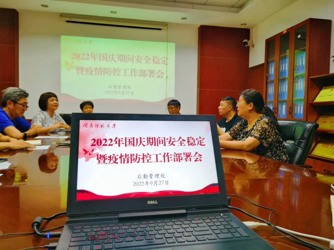 9月27日上午,后勤管理处召开2022年国庆期间安全稳定暨疫情防控工作部署会,就国庆期间安全稳定和疫情防控工作进行再安排再部署。会议由陈素红处长主持,各科室负责人参加会议。