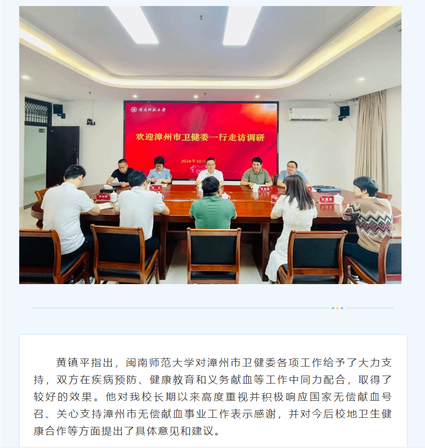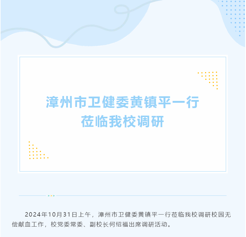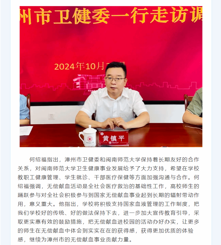 漳州市卫健委黄镇平一行莅临我校调研