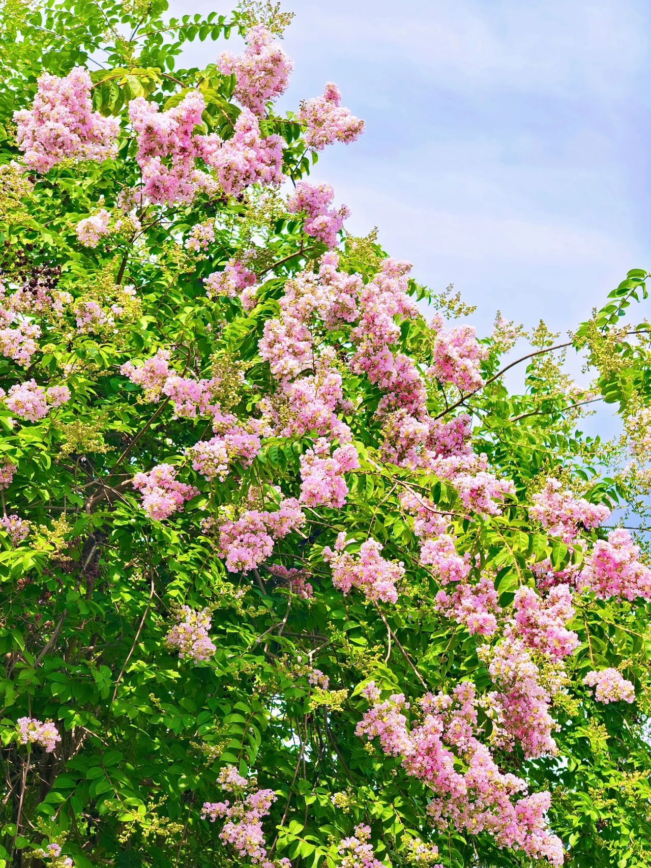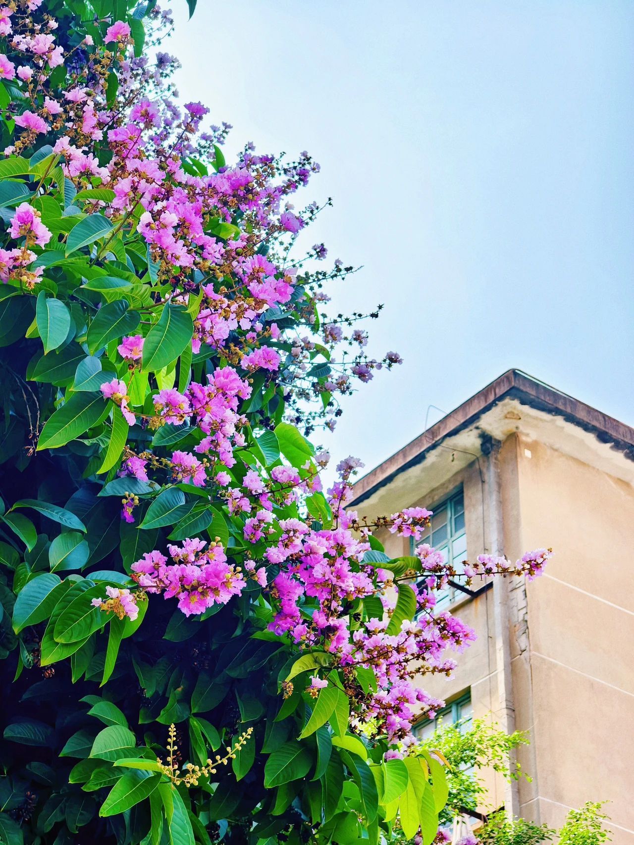 粉紫色在花海里安眠,萧萧花雨簌簌洒落。最灼眼是那泼辣的粉云,憋足暑气胀裂枝头,飞溅星点,竟沾上绿草帽檐。 总有弯腰的身影,修剪横枝,拢起一地萧萧,指尖轻托微卷的花苞。汗珠滚入泥土的裂痕,新绿便从隙缝中昂头。 草木不语,却以斑斓的静默,回应每道俯身的脊梁。 安静非寂静,一切在七月末悄然积蓄,静候新生。